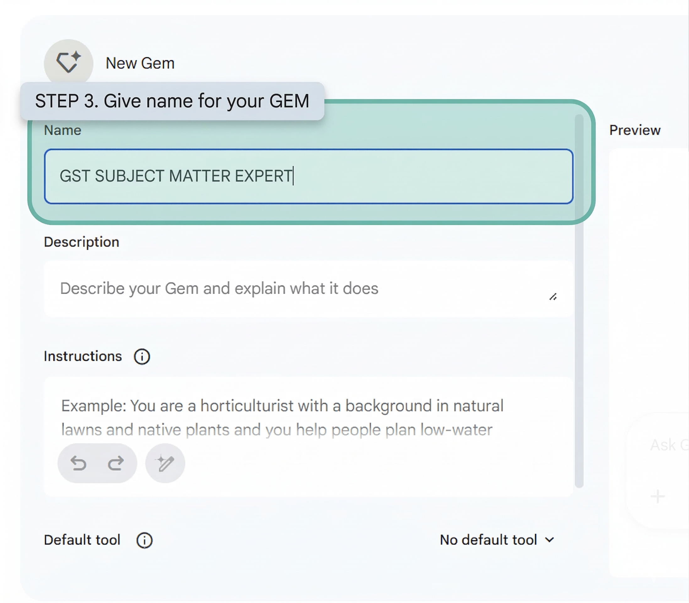 Use the preview area on the right to chat with your Gem and ensure it behaves as expected. Once you're happy, click Save.
