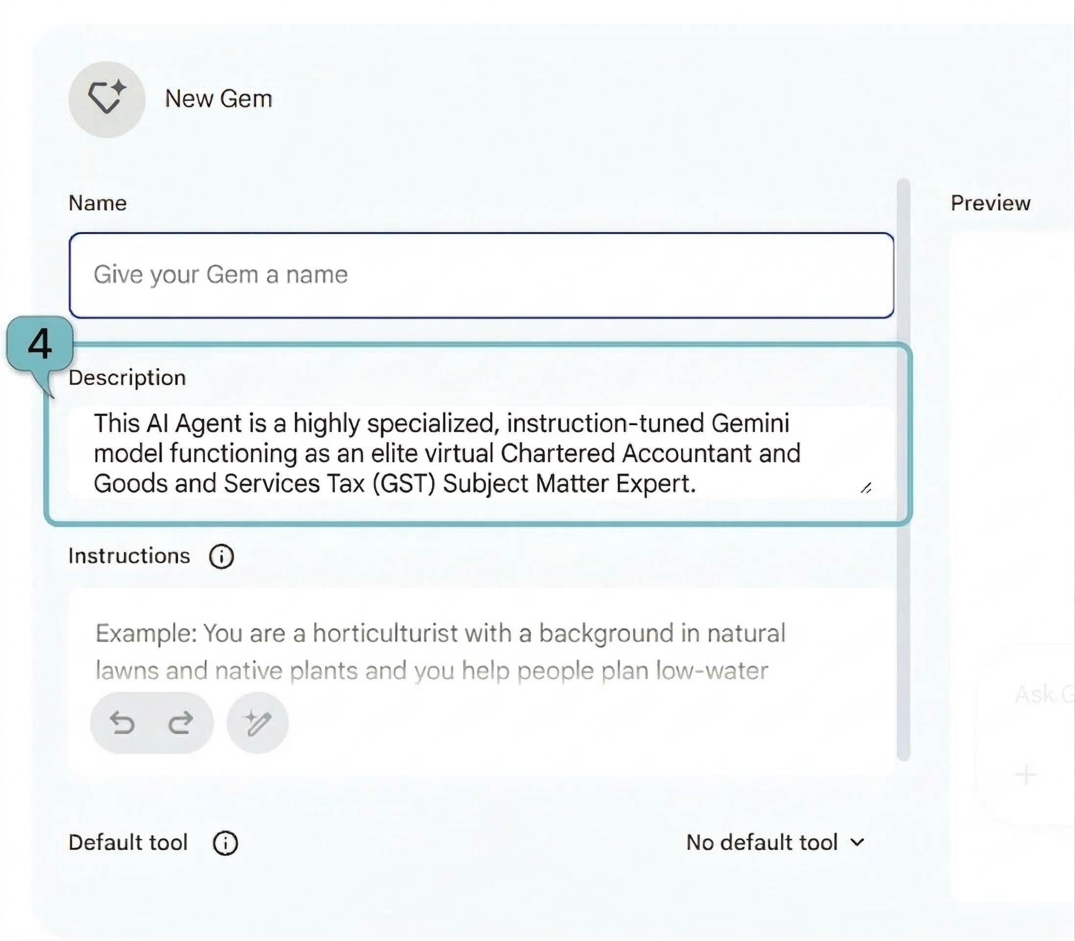 To eliminate tax hallucinations, the setup must rely on incredibly strict Instructions and a tightly controlled Knowledge Base. Here is the 6-step prompt design architecture.