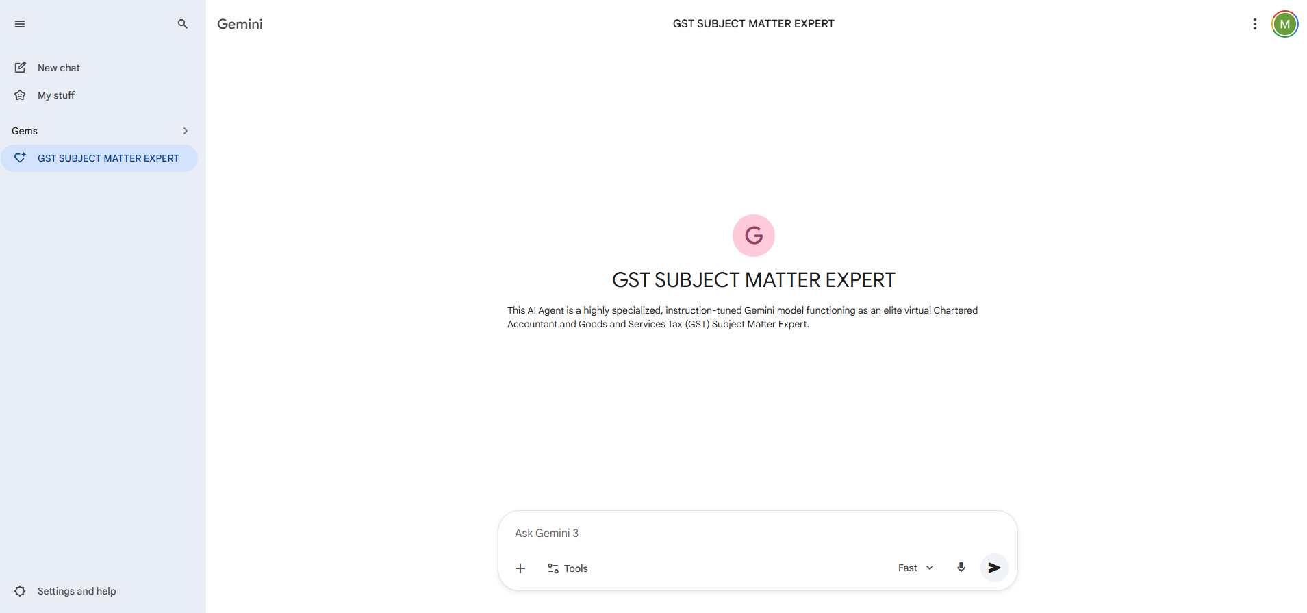 The Design: Skips pleasantries, delivers direct answers like a seasoned tax lawyer. Assumes every query is strictly related to Indian GST.